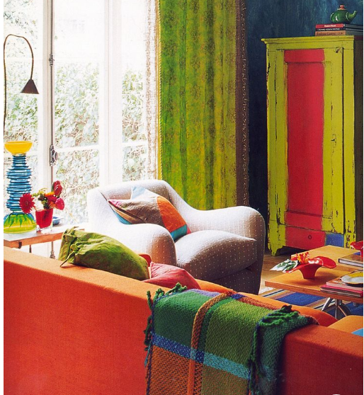A truly contemporary feel was further created by me , with bright-bold, heavy rustic crazed finishes, for the 1987 Designers Guild book ‘In Town’.