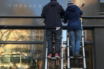 Nick and Seraina NGS Signs, sign painters London, How to order a Sign, NGS. Sign writing costs NGS, Marylebone, Mayfair, Soho, Borough market cafe coffee house signage NGS Chiswick