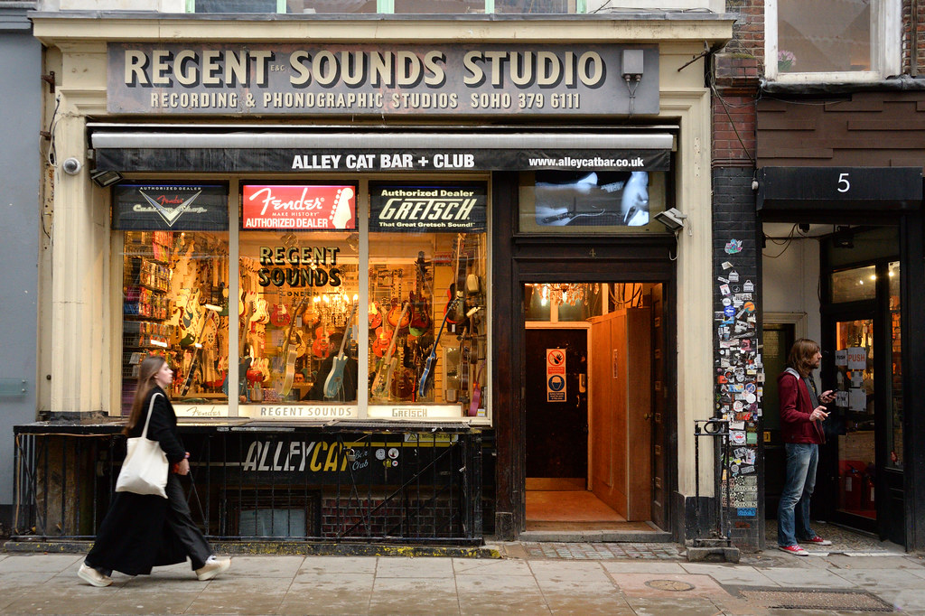 One of Denmark street’s stalwarts is Regent Sounds Studio which was established in the 1950s by Ralph Elman and taken on in 1961 by James Baring, an eccentric old Etonian and enthusiastic supporter of emerging pop acts.