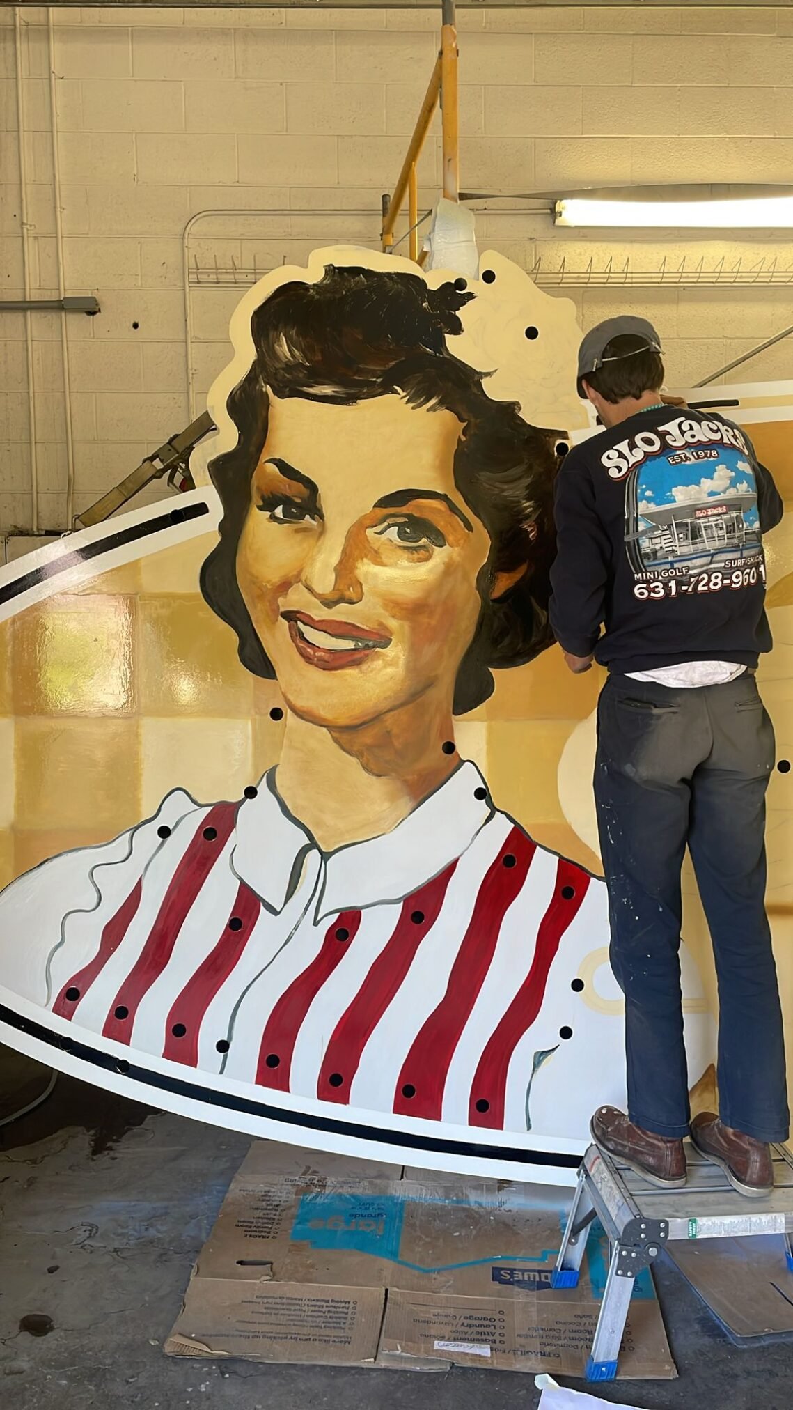 Progress moved steadily forward, with the painting of the 3 shades of gingham pattern wrapped and ready for its final faded edges by days 5–6. Title text placements were completed smoothly by day 4 — no hiccups, no hold-ups. Everything stayed on track and drama-free… or at least, nothing we’re willing to admit here!